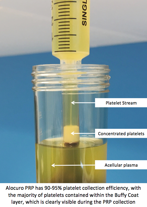 “The PRP is platelet-rich plasma and contains over 90% of the platelets available for collection from the whole blood sample. Only the white cell depleted PRP is used.”